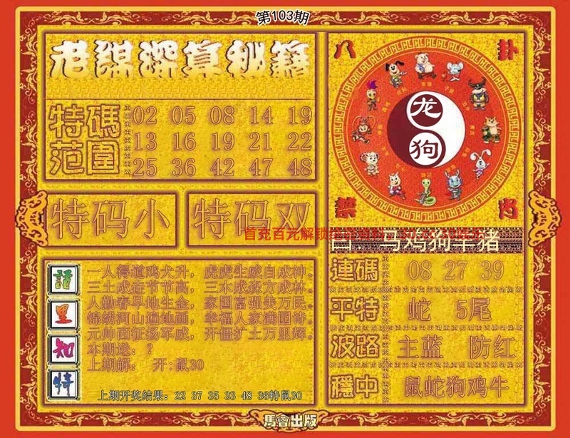 103期:平特一尾--《8888尾》--开:狗08准 |