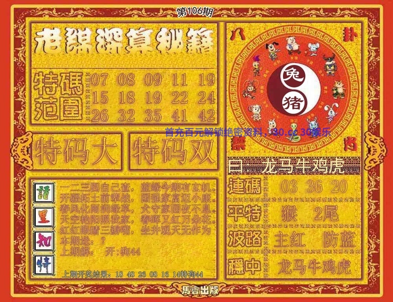 106期:平特一尾--《7777尾》--开:猪43错 |